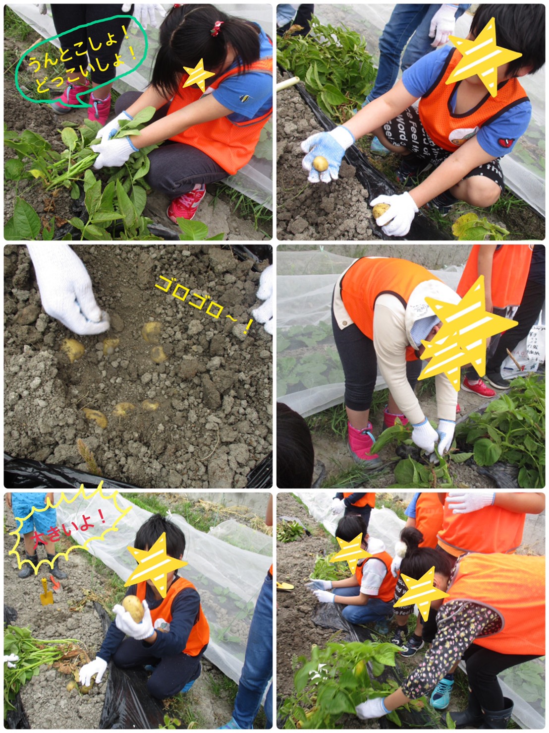 じゃがいもを傷つけないように 周りの土を手で掘って、ゴロン!と出てきた時は、みんなとっても うれしそうでした。