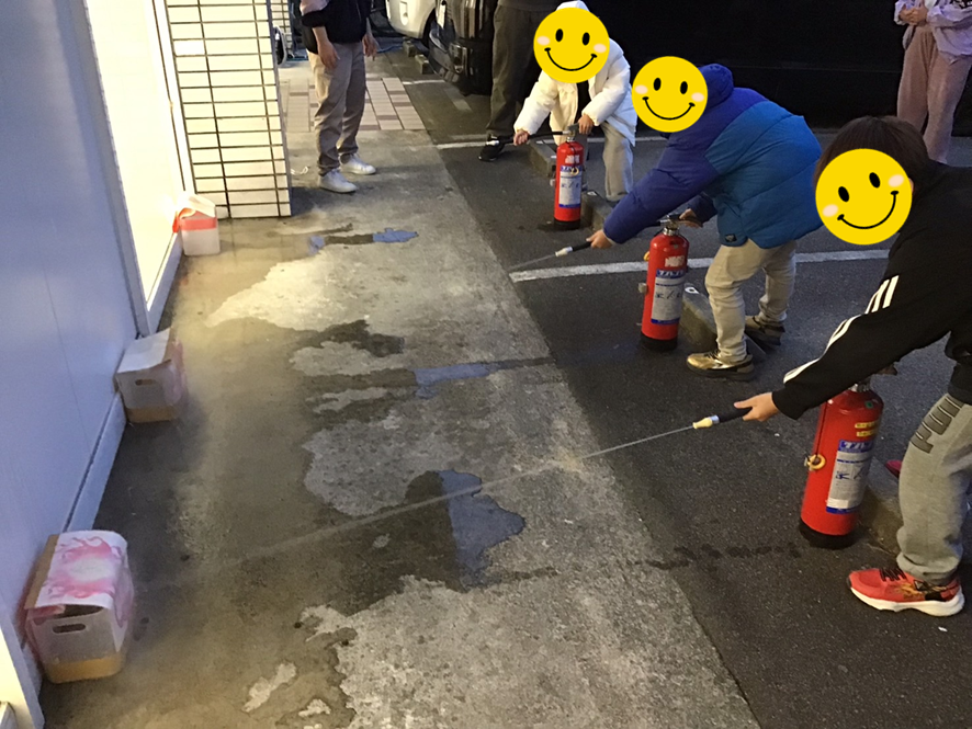 また、子ども達には消火器の使い方についてイラストを用いて説明しています。
